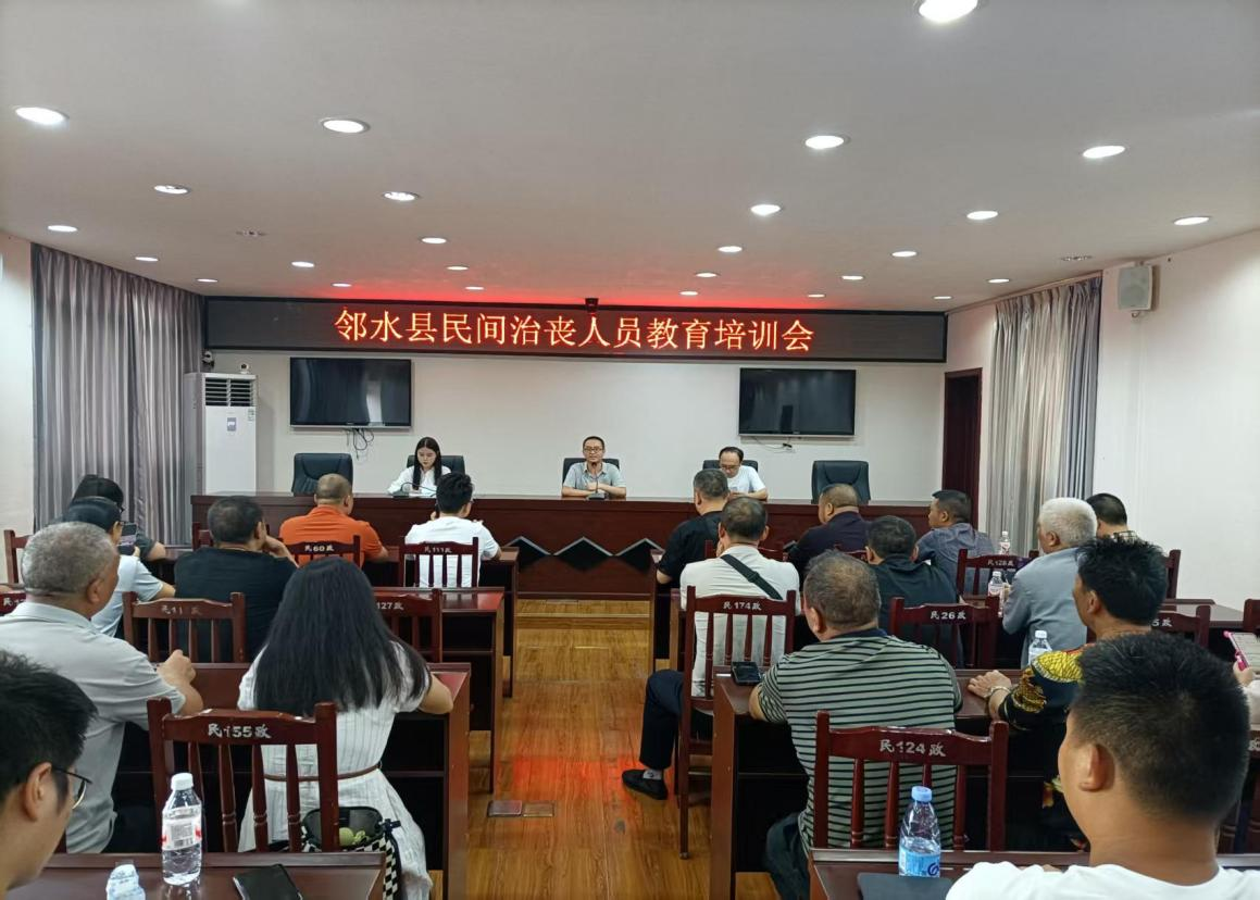 为切实规范民间治丧行为,加强民间治丧人员的宣传教育引导,树立绿色文明殡葬新风。9月28日下午,县民政局组织举办了邻水县民间治丧人员教育培训会。各镇民政负责人、民间治丧人员、县殡仪馆人员共计57人参加了培训。