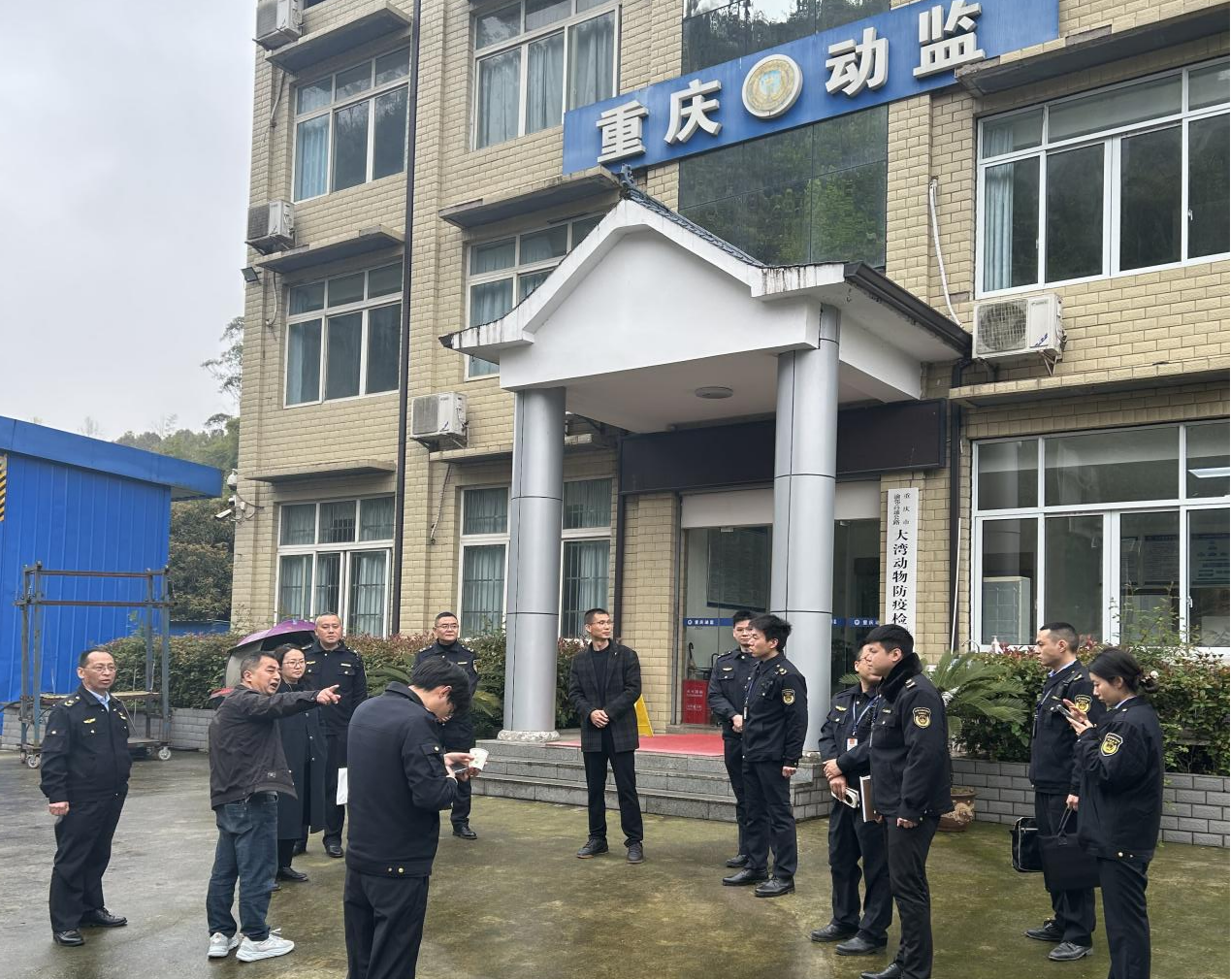在渝邻高速公路大湾动物防疫检查站,联合检查组实地察看了检查站运行情况,详细了解跨省调运动物检疫、车辆消毒流程及病死畜禽无害化处理措施,并与当班工作人员就疫病防控要点进行现场交流,进一步夯实畜禽调运监管基础。