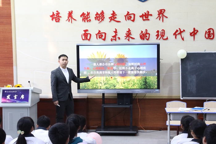 高中部精品课展示在阶梯教室举行,林洪老师执教了第一节心理健康教育主题班会《向阳花开·青春绽放》,本节课选题针对性强,当代高中生存在压力大、隔代教育、角色转变、人际关系处理和学习方法构建等诸多问题,需要班主任细心观察、科学引导;教学结构清晰,教学方法多样,充分运用新媒体、情景剧和测试等教育手段,注重用身边的案例解决实际问题,引领学生幸福成长。廖文老师执教高中物理《超重·失重》,是一堂用牛顿三个定律解释身边物理现象的应用课。廖文老师打破传统的“引导发现问题、提出问题”方式,而是通过实验测量数据展开教学,利用类比、反证、定性分析、定量推理等方式,得出超重、失重概念,运用牛顿运动定律获得新知识、总结新规律,解释新现象,运用体验、探究、新媒体等手段,拓展学生思维,培养学生科学素养。凸显了教师驾驭课堂张弛有度,语言风趣,亲和力强的教学风格。新教师刘美玲执教了一堂高中英语阅读课《Module2NoDrugs》,选用了两篇阅读文章,一是引导学生阅读第一篇科普说明文,了解毒品的种类、对人体的危害,认识文章结构,总结出文章体裁;二是以情景剧阅读方式学习第二篇文章,深刻认识毒品的重大危害性。本节课采用项目式教学法,注重思想道德教育、阅读、游戏活动的融合,有效提高教学效率。张显庆校长对清晰的教学目标、严谨的课堂结构、及时的信息反馈、和谐的师生关系、充满朝气的课堂气氛等作了精彩点评。