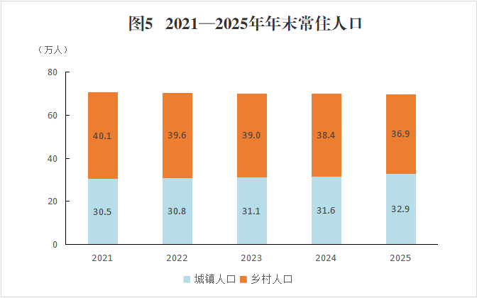2025年末,公安户籍总户数306928户,总人口963987人。按性别分,男511604人,占总人口的53.1%;女452383人,占总人口的46.9%。按居住地分,城镇居民205393人,占总人口的21.3%;农村居民758594人,占总人口的78.7%。全年出生人口5429人,人口出生率5.6‰;死亡人口8534人,人口死亡率8.8‰;人口自然增长率-3.2‰。