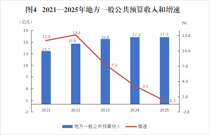 2025年,全部工业增加值59.6亿元,下降3.7%,对经济增长的贡献率为-24.9%,拉低经济增长0.7个百分点,工业化率19.6%。