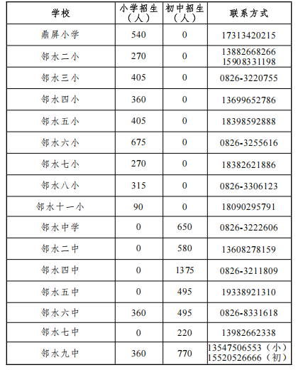 邻水县2025年义务教育阶段城区公办学校招生计划表及联系方式