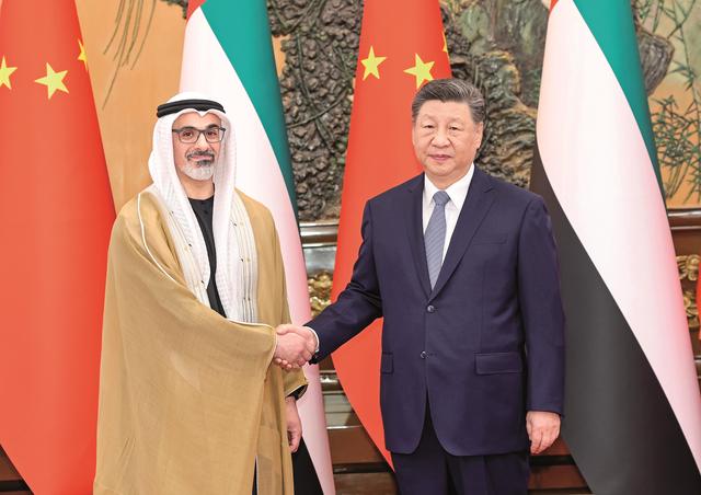 习近平指出,阿联酋是中国的全面战略伙伴,中方始终高度重视发展同阿联酋的关系。在双方共同努力下,中阿关系保持健康稳定发展,政治互信不断加深,务实合作稳步推进,人文交流丰富多彩。巩固和提升中阿关系是双方的坚定共识,符合两国人民期待。中方愿同阿方携手同行,打造更加稳固坚韧、富有活力的中阿全面战略伙伴关系。双方要继续在涉及彼此核心利益和重大关切问题上相互支持,保持高层交往,筑牢战略互信。加强发展战略对接,在能源、投资、贸易、科技等领域深挖潜力,深化互利合作。推动教育、民航、旅游等合作取得更大进展,密切人文交流,夯实民意基础。在联合国、金砖国家等多边平台增进协调合作,以中阿关系的稳定性应对国际和地区形势的不确定性,共同推动构建人类命运共同体。