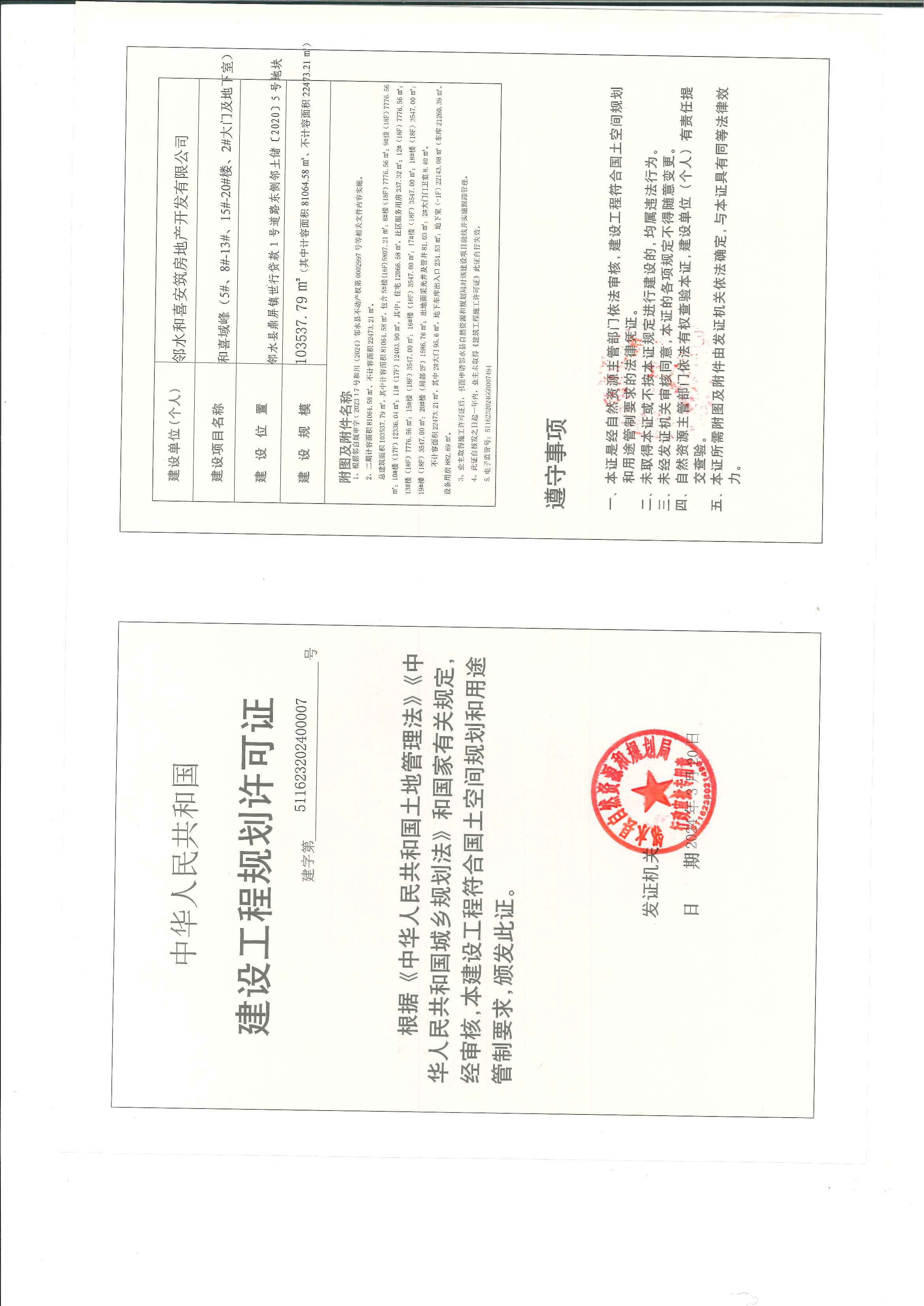 和喜域峰(5#、8#—13#、15#—20#楼、2#大门及地下室)位于邻水县鼎屏镇世行贷款1号道路东侧邻土储〔2020〕5号地块。2024年3月20日核发邻水和喜安筑房地产有限公司和喜域峰(5#、8#—13#、15#—20#楼、2#大门及地下室)《建设工程规划许可证》,根据规划公示相关规定,现进行批后公布。