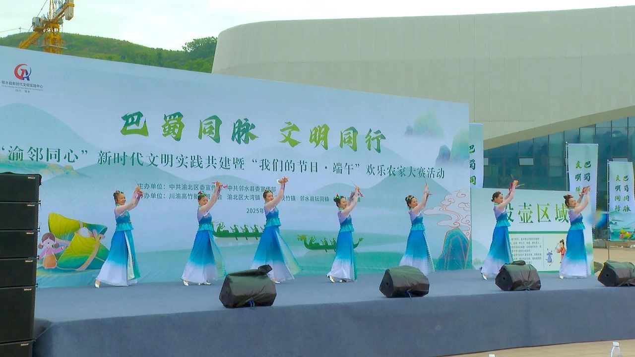 巴蜀同脉、文明同行。5月27日,“渝邻同心”新时代文明实践共建暨“我们的节日·端午”欢乐农家大赛,在川渝高竹新区政务服务中心广场举行。邻水县、重庆市渝北区两地村民齐聚一堂,共育文明乡风,以赛民俗、包粽子的传统农家大赛,欢庆端午佳节。