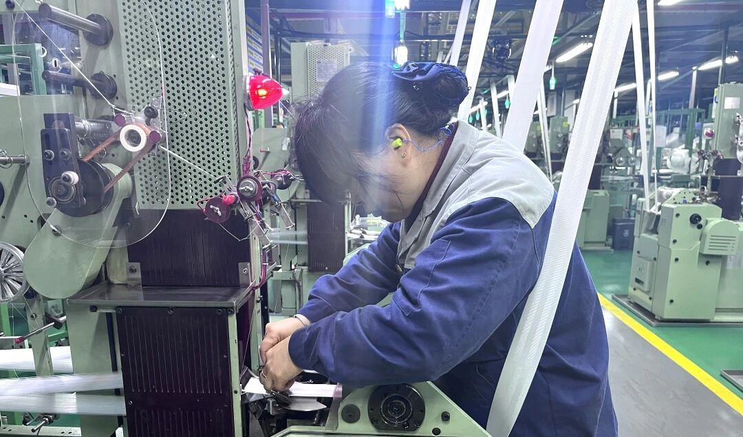 与此同时,邻水县各工业企业也纷纷复工复产,开足马力赶制订单。在四川光程汽车配件有限公司,全员返岗生产车间一派繁忙,管理层正在召开复工复产会议;织造区域智能化设备高速运转,工人仔细检查产品质量;印染区滚筒转动,工人实时调整参数;盘带生产线上成品整齐码放。