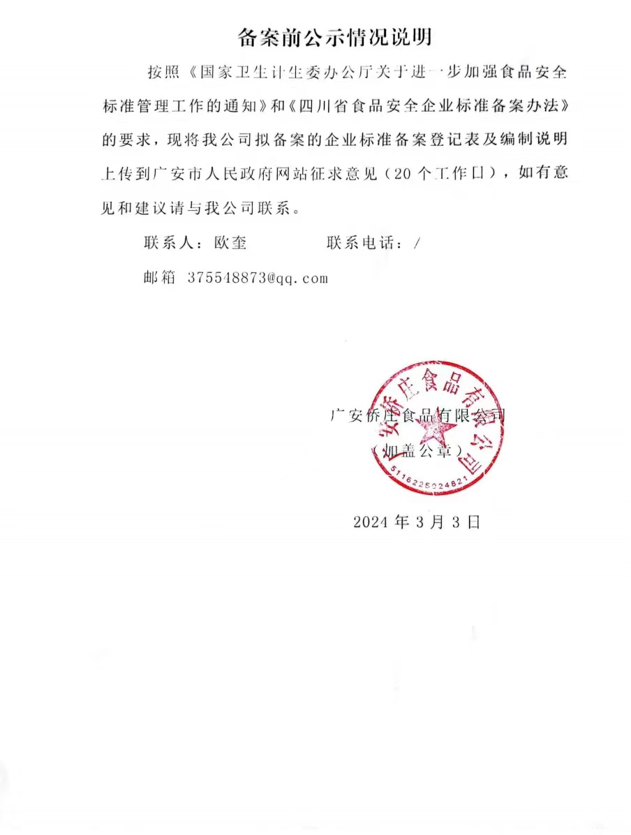 广安侨庄食品有限公司--炖汤料--备案前公示