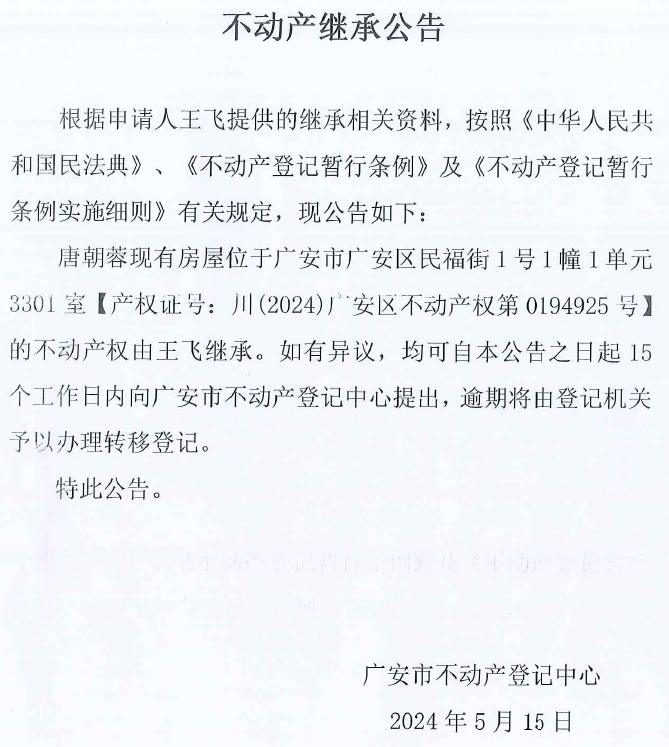 不动产继承公告(王飞)